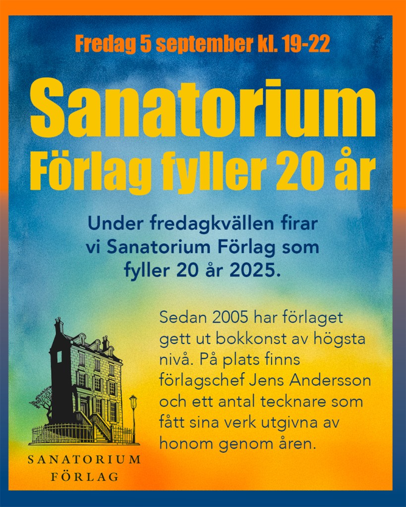 Under fredagkvällen firar vi Sanatorium Förlag som fyller 20 år 2025.